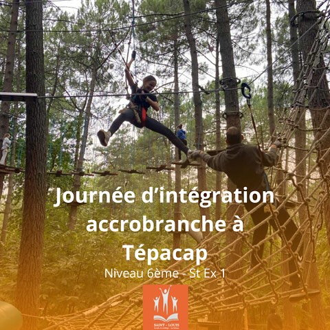 Journée d’intégration réussie pour nos 6e et nos St Ex 1 à l’accrobranche ! Entre convivialité, entraide et partage, ils ont relevé les défis dans